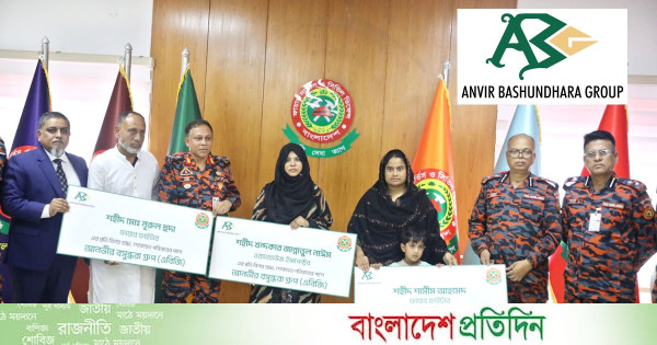 টঙ্গীতে কেমিক্যাল গোডাউনে আগুন নেভাতে গিয়ে অগ্নিদগ্ধ হয়ে শহীদ তিন ফায়ার ফাইটারের পরিবারকে আর্থিক সহায়তা করেছেন আনভীর বসুন্ধরা গ্রুপের (এবিজি) চেয়ারম্যান সায়েম সোবহান আনভীর। সহায়তা পাঠানোয় এবিজি চেয়ারম্যানকে ধন্যবাদ ও কৃতজ্ঞতা জানিয়েছেন ফায়ার সার্ভিস ও সিভিল ডিফেন্সের মহাপরিচালক (ডিজি) ব্রিগেডিয়ার জেনারেল মুহাম্মদ জাহেদ কামাল, শহীদ ফায়ার ফাইটার মো. নুরুল হুদার বাবা মো. আবুল মনসুর, শহীদ শামীম আহমেদের স্ত্রী মনিরা আক্তার ও শহীদ খন্দকার জান্নাতুল নাঈমের স্ত্রী ফারজানা ইসলাম মিতু।