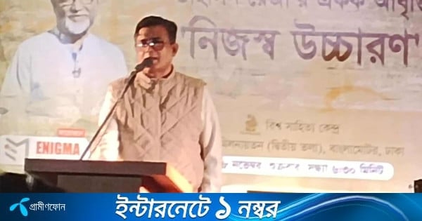 শুক্রবার সন্ধ্যায় বিশ্বসাহিত্য কেন্দ্র মিলনায়তনে বাচিকশিল্পী তাহসিন রেজার "নিজস্ব উচ্চারণ" শীর্ষক আবৃত্তির উদ্বোধনকালে প্রধান অতিথির বক্তব্যে তিনি এসব বলেন।
