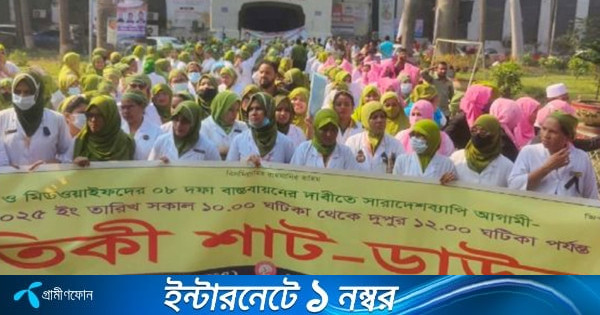 সারাদেশব্যাপী সকল স্বাস্থ্য প্রতিষ্ঠান ও নার্সিং–মিডওয়াইফারি শিক্ষা প্রতিষ্ঠানে একযোগে প্রতীকী শাটডাউন কর্মসূচি পালন করেছেন নার্স ও মিডওয়াইফরা। রবিবার (৩০ নভেম্বর) সকাল ১০টা থেকে দুপুর ১২টা পর্যন্ত ঢামেক বাগান গেটসহ জেলা, উপজেলা, বিভাগ ও মহানগরের সব স্বাস্থ্য প্রতিষ্ঠানের প্রশাসনিক কার্যালয়ের সামনে দুই ঘণ্টার এই কর্মসূচি চলে। একই সময়ে নার্সিং ও মিডওয়াইফারি শিক্ষা প্রতিষ্ঠানগুলোতেও প্রতীকী শাটডাউন পালন করা হয়।