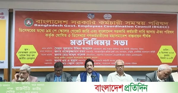 ‘ডিসেম্বরের মধ্যে ৯ম পে-স্কেলের গেজেট জারি ও মহাসমাবেশ বাস্তবায়ন’ শীর্ষক আলোচনা সভায় এ কর্মসূচি ঘোষণা দেওয়া হয়।