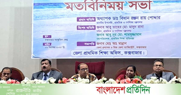 শনিবার (৬ ডিসেম্বর) কক্সবাজার সাংস্কৃতিক কেন্দ্রে জেলা প্রাথমিক শিক্ষা অফিস আয়োজিত প্রাথমিক শিক্ষার মানোন্নয়নে কক্সবাজার জেলার বিভিন্ন স্টেক হোল্ডারদের সঙ্গে মতবিনিময় সভায় প্রধান অতিথি হিসেবে বক্তৃতাকালে তিনি এ কথা বলেন।
