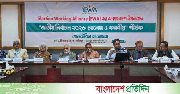 আজ বিকাল ৩টায় জাতীয় প্রেস ক্লাবের তফাজ্জল হোসেন মানিক মিয়া মিলনায়তনে ইলেকশন ওয়ার্কিং অ্যালায়েন্স (EWA)-এর আত্মপ্রকাশ ও “জাতীয় নির্বাচন ২০২৬: চ্যালেঞ্জ ও করণীয়” শীর্ষক গোলটেবিল আলোচনা অনুষ্ঠিত হয়।