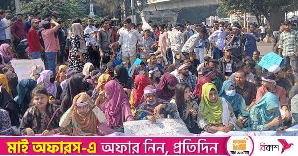 সোমবার (৬ ডিসেম্বর) দুপুর পৌনে একটার দিকে শিক্ষার্থীরা সড়কে অবস্থান নেন।