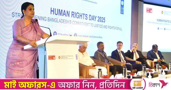 পরে মানবাধিকার দিবস ২০২৫ উপলক্ষ্যে রাজধানীর হোটেল ইন্টারকন্টিনেন্টালে আয়োজিত ‘সবার জন্য ন্যায়বিচার ও অধিকার নিশ্চিতকরণে বাংলাদেশের অঙ্গীকার’ শীর্ষক অনুষ্ঠানে উপদেষ্টা রিজওয়ানা হাসান বলেন, সরকার ন্যায়বিচার ও মানবাধিকার নিশ্চিত করতে বদ্ধপরিকর।