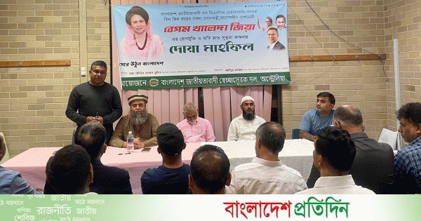 অস্ট্রেলিয়ার সিডনিতে অসুস্থ বিএনপি চেয়ারপার্সন ও সাবেক প্রধানমন্ত্রী বেগম খালেদা জিয়ার দ্রুত সুস্থতা কামনায় দোয়া ও মিলাদ মাহফিল অনুষ্ঠিত হয়েছে।