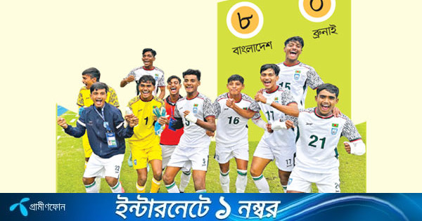 চীনে চলমান এএফসি অনূর্ধ্ব-১৭ এশিয়ান কাপ বাছাইপর্বে দুর্দান্ত পারফরম্যান্স ধরে রেখেছে বাংলাদেশ। গ্রুপ ‘এ’-তে নিজেদের দ্বিতীয় ম্যাচেও জয় নিয়ে মাঠ ছাড়ে লাল-সবুজের ছেলেরা। ব্রুনাই দারুসসালামকে ৮-০ গোলের বিশাল ব্যবধানে উড়িয়ে গ্রুপ টেবিলের শীর্ষস্থান আরও মজবুত করেছে নাজমুল হুদা ফয়সালের দল। টুর্নামেন্টের প্রথম ম্যাচে ৫-০ গোলে তিমুর লেস্তেকে হারানোর পর এটি বাংলাদেশের টানা দ্বিতীয় বড় জয়। চোংকিংয়ের ইয়ংচুয়ান স্পোর্টস সেন্টার স্টেডিয়ামে শুরু থেকেই দাপুটে ফুটবল খেলে কোচ গোলাম রব্বানী ছোটনের দল। বাংলাদেশের হয়ে জোড়া গোল করেছেন রিফাত কাজী ও অপু রহমান। একটি করে গোল করেন মোহাম্মদ মানিক, আলিফ রহমান, নাজমুল হুদা ফয়সাল ও বায়েজিদ বোস্তামি।