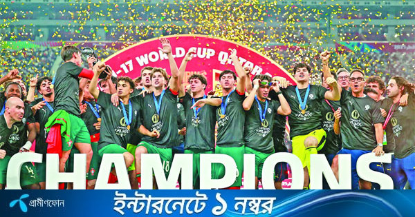 চলতি বছর ইউরোপিয়ান চ্যাম্পিয়নশিপ জিতেছিল পর্তুগাল অনূর্ধ্ব-১৭ ফুটবল দল। ইউরোপ জয়ের পর পর্তুগিজ ইতিহাসকে আরও সমৃদ্ধ করেছে যুবারা। এবার প্রথমবারের মতো অনূর্ধ্ব-১৭ ফুটবল বিশ্বকাপ জিতেছে তারা। অথচ এখন পর্যন্ত ফিফা বিশ্বকাপের ফাইনাল খেলতে পারেনি পর্তুগাল। সবশেষ কাতার বিশ্বকাপে কোয়ার্টার ফাইনাল থেকে বাদ পড়েছিল ক্রিস্টিয়ানো রোনালদোরা। ১৯৬৬ সালে তৃতীয় ও ২০০৬ সালে চতুর্থ স্থান অর্জন পর্তুগালের বিশ্বকাপ সাফল্য। তবে যুবারা লিখল নতুন বিশ্বচ্যাম্পিয়নের ইতিহাস। বৃহস্পতিবার কাতারের দোহাতে খলিফা ইন্টারন্যাশনাল স্টেডিয়ামে শিরোপার লড়াইয়ে মুখোমুখি হয় পর্তুগাল ও অস্ট্রিয়া। দুই দলেরই লক্ষ্য প্রথমবারের মতো অনূর্ধ্ব-১৭ বিশ্বকাপ জেতা। কাতারের খলিফা ইন্টারন্যাশনাল স্টেডিয়ামে বৃহস্পতিবার রাতে লড়াইয়ে ১-০ গোলে জিতে ইতিহাস গড়েছে পর্তুগাল।