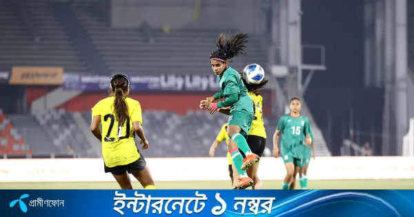 এর আগে বাংলাদেশ এগিয়ে যাওয়ার মতো সুযোগ পেয়েছিল। ডান দিক থেকে শামসুন্নাহার জুনিয়রের ক্রমে ঋতুপর্ণা লাফিয়েও বল-মাথার সংযোগ ঘটাতে পারেননি।
