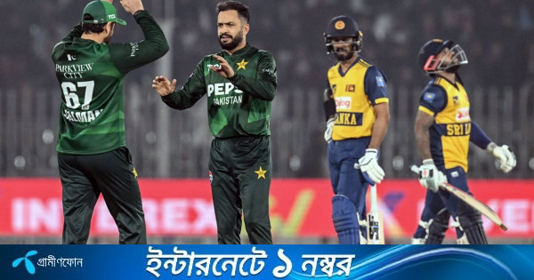 টস হেরে ব্যাট করতে নেমে শুরুতেই আঘাত পায় শ্রীলঙ্কা। তৃতীয় ওভারেই পাথুম নিসাঙ্কাকে বোল্ড করেন আফ্রিদি। এরপর কুসাল মেন্ডিস ও কামিল মিশারা ৬৪ রানের জুটিতে ইনিংস মেরামতের চেষ্টা করেন। তবে মিশারা একাই প্রতিরোধ গড়েন ৪টি ছক্কা ও ২টি চারে ৪৭ বলে ৫৯ রানের লড়াকু ইনিংস খেলেন তিনি। তার বাইরে দুই অঙ্ক ছুঁতে পারেন কেবল আরও দুই ব্যাটসম্যান।