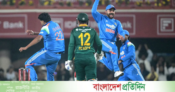 দক্ষিণ আফ্রিকার শুরুটা হয় দুঃস্বপ্নের মতো। প্রথম ৫ ওভারে হার্শিত রানা ও আর্শদিপ সিং ক্রমশ ব্যাটসম্যানদের ফিরিয়ে দেন। কর্বিন বশ কিছুটা লড়াই দেখান, প্রথমে সুব্রায়েনের সঙ্গে, পরে বার্গারের সঙ্গে ৪২ রানের জুটি গড়েন। তবে শেষ পর্যন্ত জয় বশের একাই বাঁচাতে পারেননি।