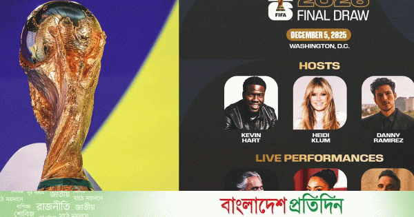 আগামী শুক্রবার (৫ ডিসেম্বর) যুক্তরাষ্ট্রের ওয়াশিংটনে অনুষ্ঠিত হবে ২০২৬ ফিফা বিশ্বকাপের ড্র। এবার ড্র অনুষ্ঠানে দর্শকদের জন্য থাকছে চমকপ্রদ ও ঝলমলে সব আয়োজন। শুধু পট থেকে বল তোলার আনুষ্ঠানিকতা নয়, লাখো দর্শককে আনন্দ দিতে মঞ্চে উপস্থিত থাকবেন বিনোদন জগতের জনপ্রিয় তারকারা।