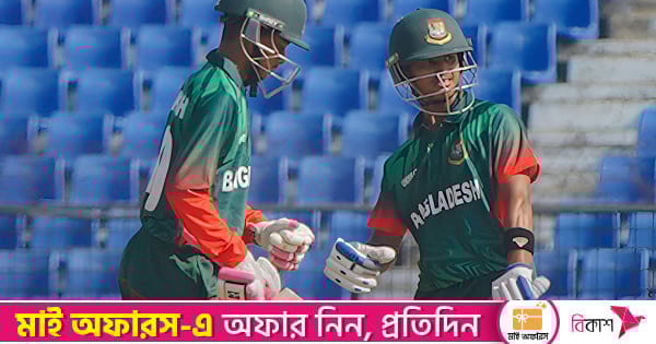 টস জিতে আগে ব্যাট করতে নেমে ৬ উইকেটে ২৭১ রানের চ্যালেঞ্জিং স্কোর গড়ে বাংলাদেশ। ইনিংসের শুরু থেকেই দায়িত্বশীল ব্যাটিং করেন ওপেনার আদৃত ঘোষ। ১৩৮ বলে অপরাজিত ১০৩ রানের ইনিংস খেলে দলকে বড় সংগ্রহ এনে দেন তিনি। ইনিংসটিতে ছিল দারুণ শটের সমাহার, যা তাকে এনে দেয় ম্যাচসেরার পুরস্কার।
