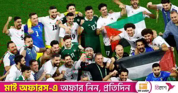 অন্যদিকে পুরো ভিন্ন আবহ দেখা গেল আল রাইয়ানে। ফিলিস্তিন ও সিরিয়ার লড়াইয়ে গোলশূন্য ড্র হলেই নিশ্চিত ছিল দুই দলের কোয়ার্টার ফাইনাল। আর ঠিক সেটাই হলো। ম্যাচ শেষে দুই দলের খেলোয়াড়রা আবেগে ভেঙে পড়েন, উৎসবে মেতে ওঠেন সমর্থকেরাও।