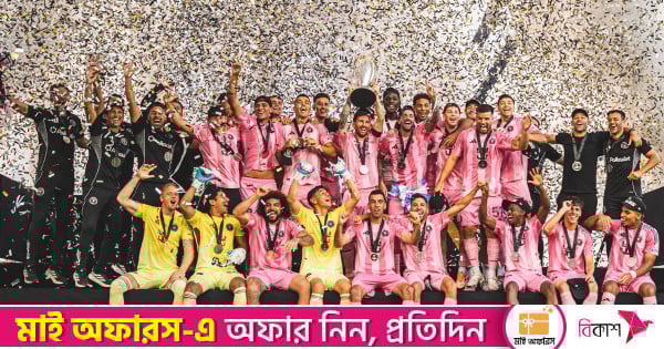মেসির নেতৃত্বে ইন্টার মায়ামি প্রথমবারের মতো জিতল এমএলএস কাপ, ফাইনালে ভ্যাঙ্কুভার হোয়াইটক্যাপসকে ৩-১ গোলে হারিয়ে। ফাইনাল ম্যাচটি অনুষ্ঠিত হয়েছিল চেজ স্টেডিয়ামে গত রবিবার (৭ ডিসেম্বর)। ম্যাচ শেষে মায়ামিতে শুরু হয় উদযাপন, যেখানে খেলোয়াড় ও সমর্থকরা উদযাপন করছেন ঐতিহাসিক জয়ের আনন্দে।
